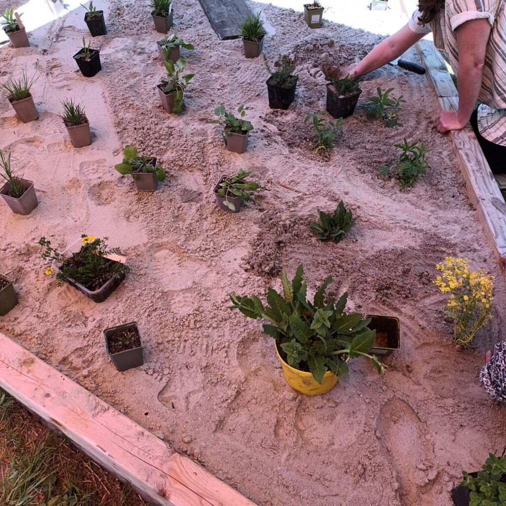 In einem ersten Schritt werden an diesen halbschattigen Standort angepasste Pflanzpläne erstellt. Viele der ausgewählten Pflanzen stammen aus dem „Lebensbereich Gehölzrand“, wo sonnenbeschienene und von den Baumkronen beschattete Bereiche ein sehr abwechslungsreiches Habitat bieten. Wir haben also eine reiche Auswahl an gebietseigenen Pflanzen zur Verfügung, die nun geschickt angeordnet werden müssen.