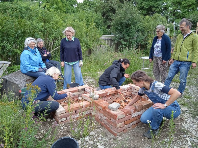In einem Gemeinschaftsgarten, der von vielen Menschen genutzt wird, gibt es allerdings kaum Bereiche mit offenem Boden, der ungestört bleiben kann. Jeder Fleck ist bepflanzt mit Blumen, Kräutern, Gemüse oder Beerensträuchern. Die meisten Beete werden gegossen und regelmäßig gelockert. Also kein Platz für Wildbienen? Doch – wenn man die Bedürfnisse von Mensch und Biene miteinander verbindet.