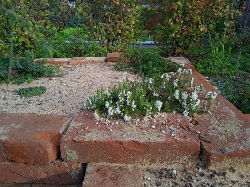 Das Beet wurde letzten Sommer angelegt. Der Thymian hat den Winter im trockenen Substrat gut überstanden. Ob sich im Frühjahr nun auch die Wildbienen einfinden, wird sich zeigen.